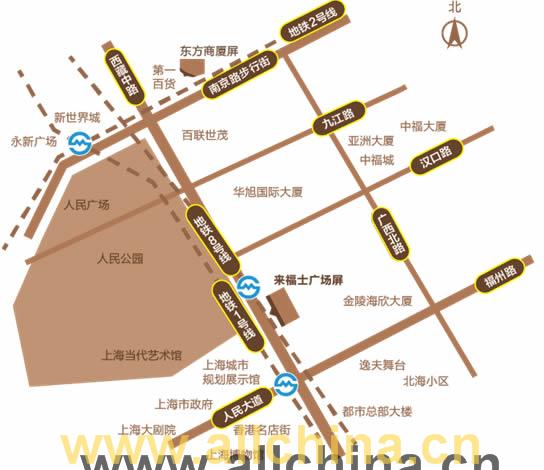 干道:正對西藏中路,是延安高架路連接南京路商圈的主要出口,地鐵1、2、8號線在此交匯,聚集著超大人車流量。