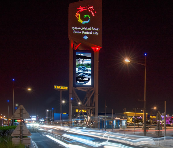 這個兩面的戶外高清電子廣告屏位于多哈最大的購物中心多哈節(jié)日城。面對沙馬爾路的兩條車道,這是最繁忙的道路。