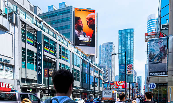 在多倫多登打士廣場的北側(cè)矗立著這座引人注目的 2,145 英尺數(shù)字高清大屏。這塊數(shù)字顯示屏為在 Yonge Street 主干道上行駛的所有南向車輛提供了較長的視線和能見度。這一壯觀的戶外大屏為參觀這個多倫多標志性場所的觀眾創(chuàng)造了身臨其境的體驗,并為品牌提供了一個很好的活動平臺。